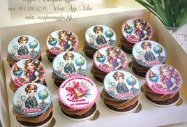 Капкейки декорируются сладостями,шоколадными открытками,съедобной печатью.